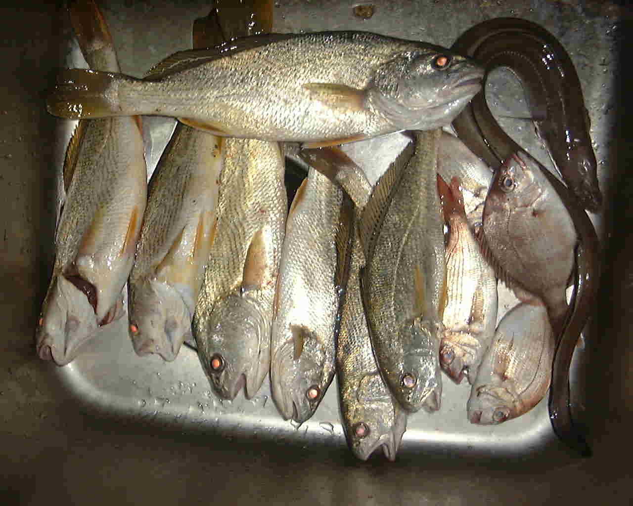 コイチ(〜34cm) 7匹、タイ(小) 4匹、アナゴ(大) 1匹