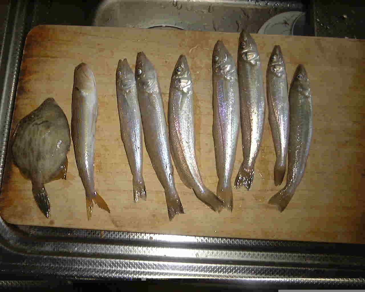 キス(〜22cm) 7匹、エソ(小) 15匹位、カワハギ(中) 1匹