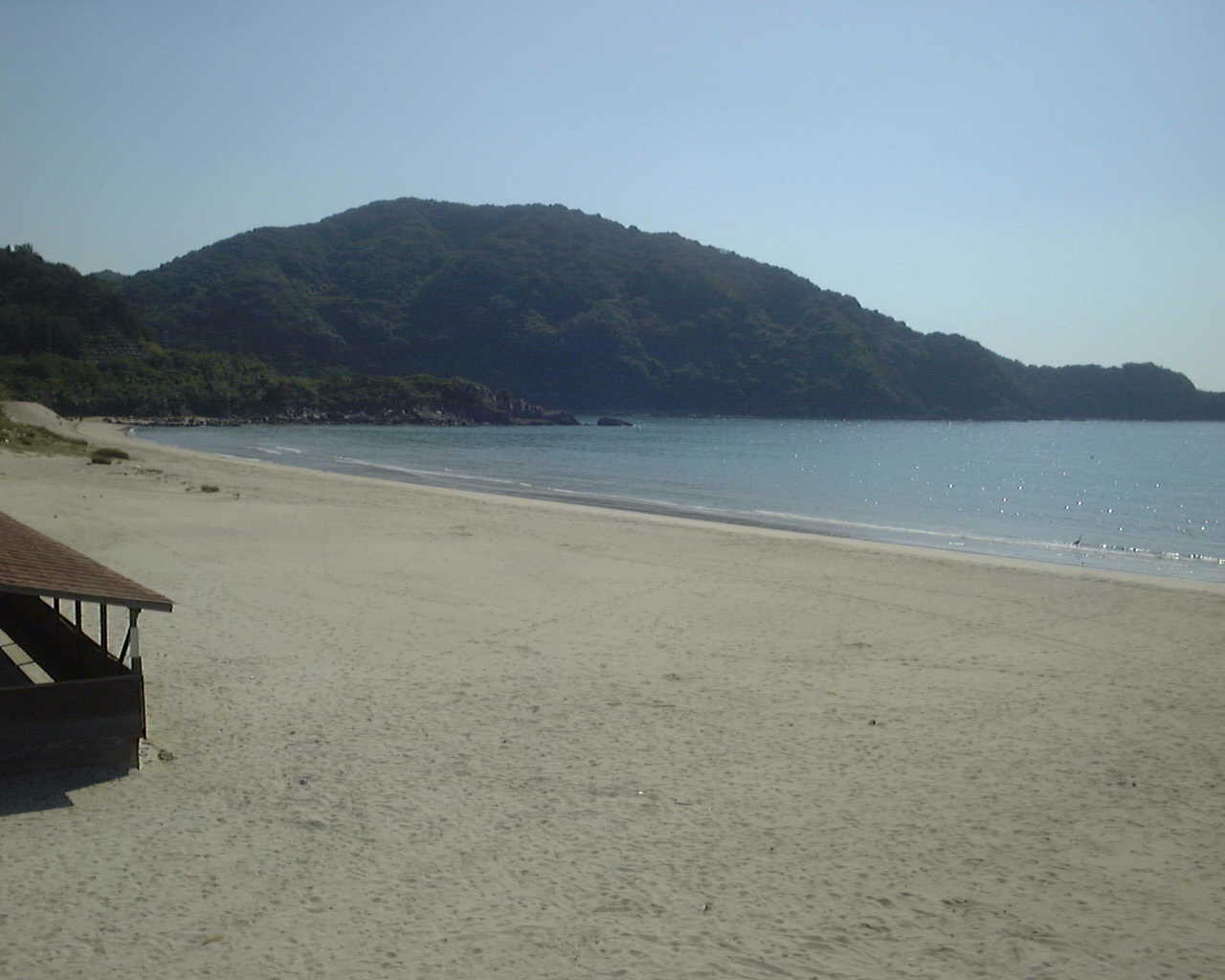 吉母海水浴場。左端の小屋みたいなやつは海の家。