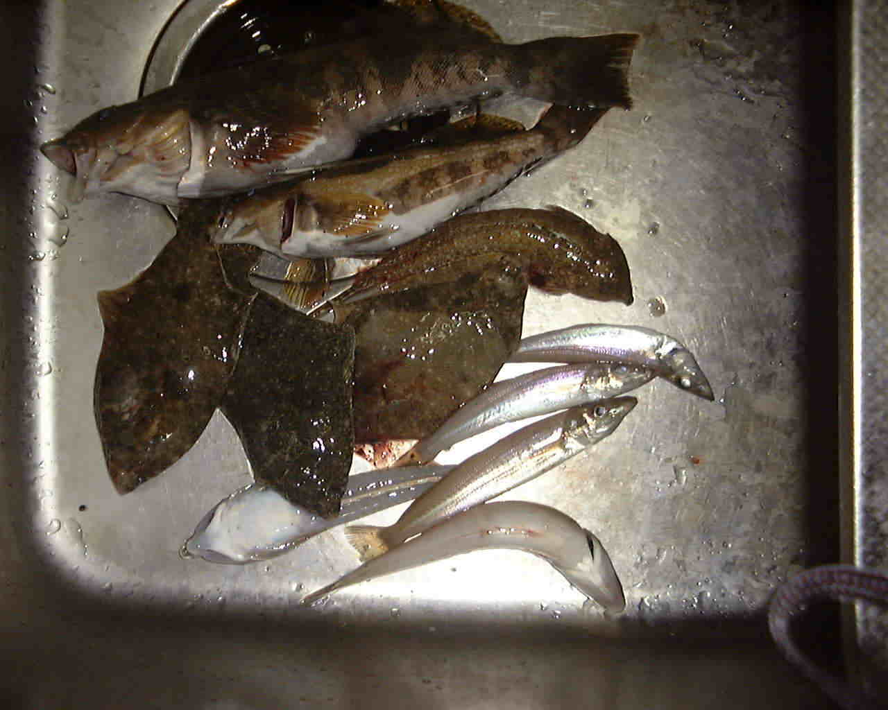 カレイ3匹(20cm前後) キス5匹 アイナメ2匹(31cm 24cm)