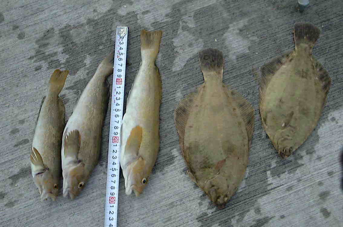 カレイ2匹(29cm他) アイナメ3匹(30cm他) イイダコ1匹