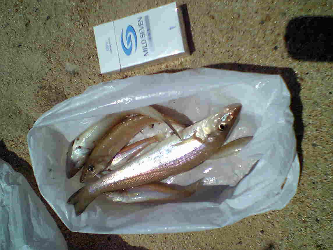 でも、1投目から5色付近でアタリがあって、20cm位のキスをゲット!
