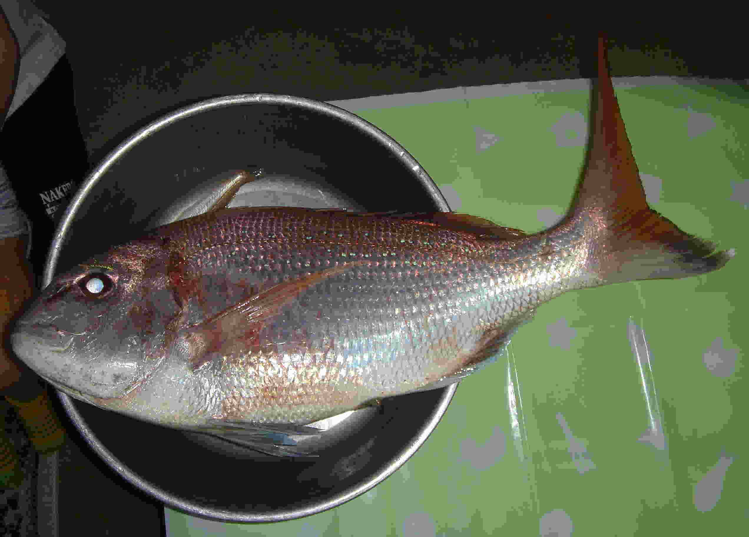 仕掛け: ハリス シーガー5.0号、 ハリ カットビッグサーフ15号 1本針、