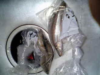 仕掛け:ハリス ホンテロン0.8号、 ハリ キススペシャル6号・トーナメントキス5号 6本針、8本針