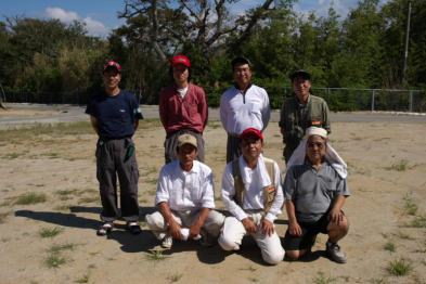 | 手前から、kisuchikuさん、たま勝さん、師匠、大師匠です。 kisuchikuさんは、大好きな遠投ではなく、渋々(?)チョイ投げをして、13匹上げていました。 たま勝さん達は、渋いうえに、海草が多い場所に入ったため、かなり苦戦していました、がビールを飲みながら早々宴会モードに入った割には、ちゃんと釣っていました。 |