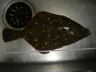 引きは大した事はなかったんですが、ゆっくり巻いて寄せてくると、思ったより大きいカレイでした。