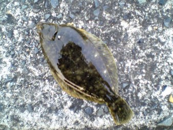 やっと釣れたのは手のひらカレイでした〜これじゃあ、遠征しても型は同じようなもんです。