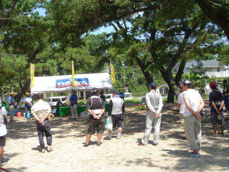 虹が浜の大会会場の駐車場に着くと、すでにたくさんの方々が集まっており、kisuchikuさん、國さん、K出さんなど、九州代表の方々に挨拶をします。