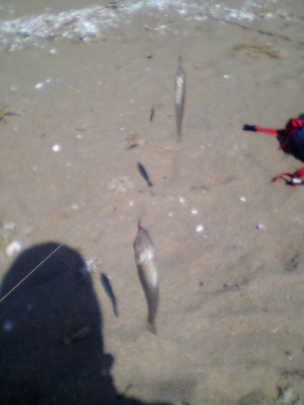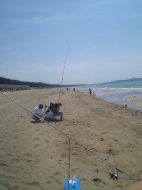 ダレていた古賀軍団もまた釣り始めますが、その後はアタリも無くて、潮が引いてきて潮干狩りの人が増えてきたので、仕方なく納竿です。