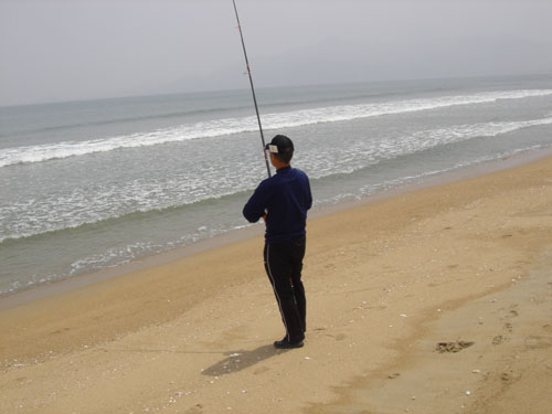 終了間際、やっと群れが回ってきたのか、2匹ほどあげたのですが、あせって雑にあげたせいか、波にもまれて、2匹もバラシてしまいました。