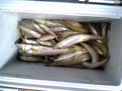 ちょうど、駐車場に着くと、CIMAさんが会社の同僚の方と一緒に引き揚げるところで、当然CIMAさんはたくさん釣っていましたが、同僚の方は?だったので、私の釣ったキスを進呈しました。