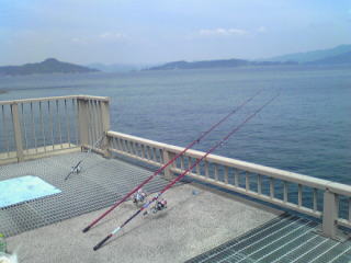 もう一本の竿はとりあえずホンムシを付けて、かるく投げ込んでおきます。